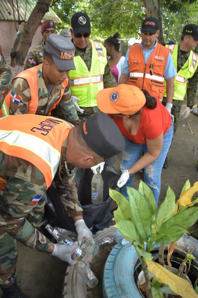 Santo Domingo, RD.- Siguiendo las intenciones del Excelentísimo Señor Presidente Constitucional de la República, Lic. Danilo Medina Sánchez y por instrucciones del Ministro de Defensa, Tte. General Rubén D. Paulino Sem, ERD., por segundo fin de semana consecutivo el Ejército continúa la 2da. Jornada de labores de fumigación, descacharrización y recolección de escombros para combatir la proliferación y criaderos del mosquito Aedes aegypti en todo el territorio Nacional en apoyo a los Ministerios de Defensa, Obras Públicas y Salud Pública.