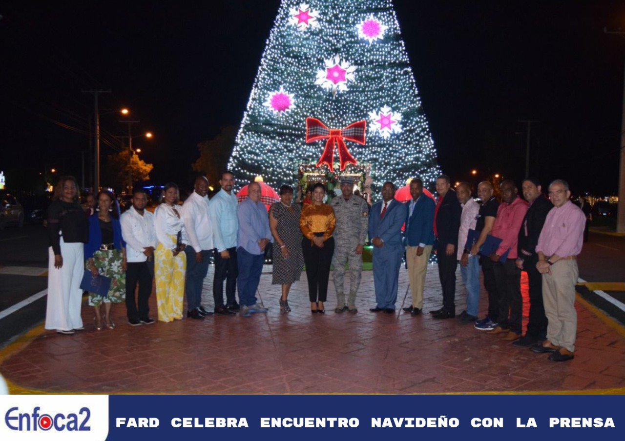 Con el propósito de compartir la Magia de la Navidad y fortalecer los lazos de amistad y cooperación, el Comandante General de la Fuerza Aérea de República Dominicana (FARD), Mayor General Técnico de Aviación Carlos Febrillet Rodríguez, junto a su esposa la Ing. Mencía Ortiz de Febrillet, presidenta de la Asociación de Esposas de Oficiales de la FARD (AEOFARD), sostuvieron un fraternal encuentro con miembros de la prensa al pie del gigantesco Árbol de Navidad de la institución.