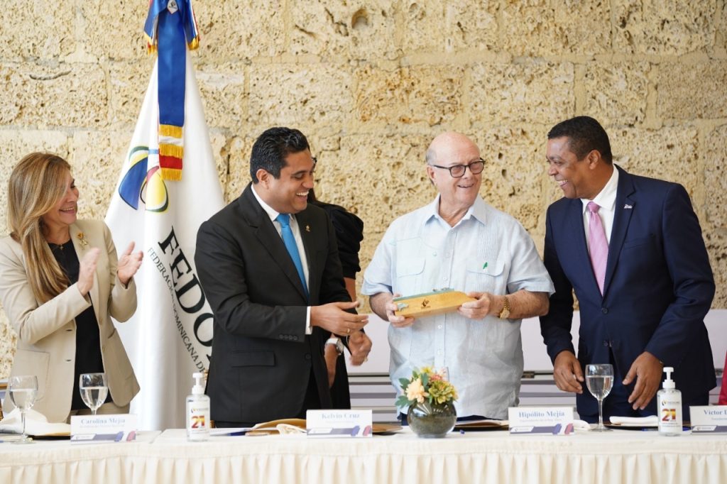 Santo Domingo. 02 de agosto- En el marco de la reunión del Consejo Directivo de la Federación Dominicana de Municipios (Fedomu) fue reconocido el expresidente Hipólito Mejía por sus aportes a la municipalidad durante su gestión de Gobierno 2000- 2004.