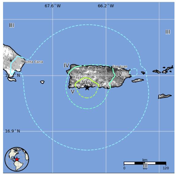 El terremoto de hoy tuvo lugar las 4.24 hora local (8.24 GMT) y con una profundidad de 1 kilómetro, según informó la Red Sísmica de Puerto Rico (RSPR) en su dirección en internet.