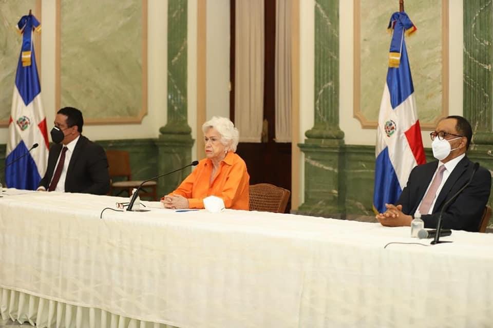 Ortiz Bosch, acompañada del Consultor Jurídico del Poder Ejecutivo, Antoliano Peralta Romero y el director de Compras y Contrataciones Públicas, Carlos Pimentel, anunció una serie de iniciativas tomadas por el presidente Abinader en favor de la transparencia y en contra de la corrupción en el las instituciones del Estado.