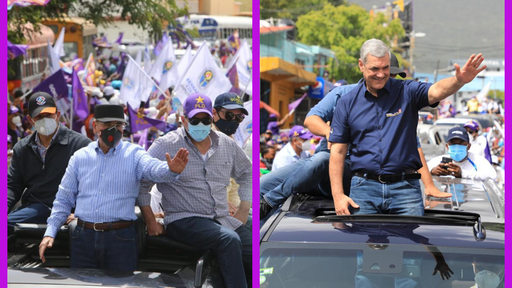 En la gran marcha caravana encabezada por el presidente Danilo Medina y Gonzalo Castillo recorrieron las provincias Puerto Plata, Santiago, Espaillat y La Vega, atravesando barrios y sectores residenciales, recibiendo el apoyo del pueblo.