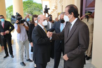 A su llegada fue recibido por los ministros Gustavo Montalvo y José Ramón Peralta y el vocero de la Presidencia, Roberto Rodríguez Marchena.