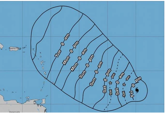 No obstante, la velocidad con la que se trasladaba disminuyó, alcanzando ahora los 19 kilómetros por hora. Asimismo, los expertos indican que se localiza a unos 2,075 kilómetros al norte de las Islas de Sotavento.