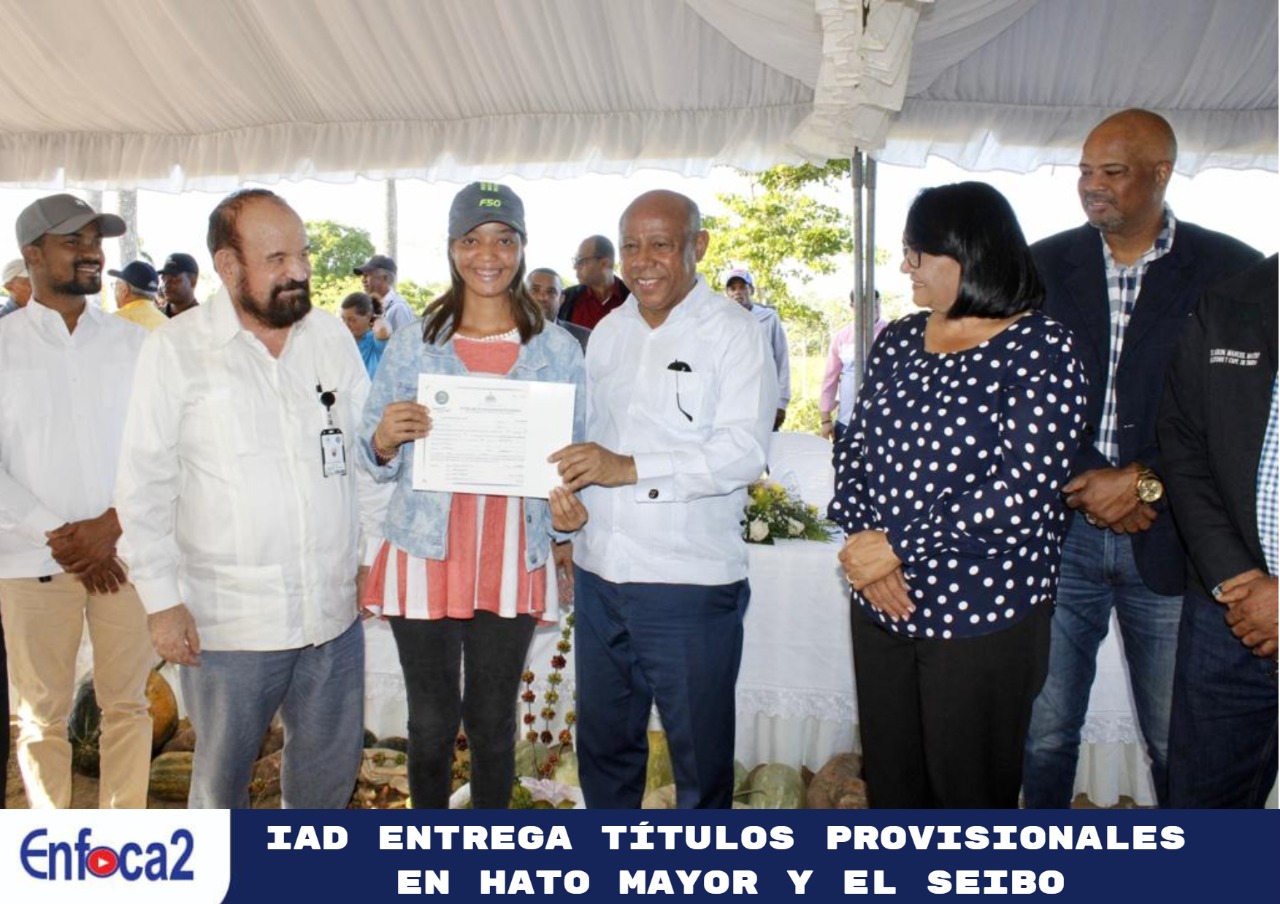LOMA LARGA, Hato Mayor: El director general del Instituto Agrario Dominicano(IAD), Francisco Guillermo García, encabezó este miércoles el acto de entrega de 277 títulos provisionales de propiedad a igual número de parceleros asentados en proyectos de la Reforma Agraria de las provincias El Seibo y Hato Mayor.