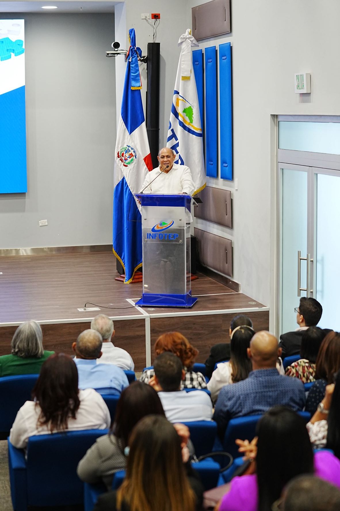 El director del INFOTEP reivindicó en el acto de presentación del documento de sistematización y lanzamiento de la página web, que “la institución sigue colocándose a la altura de las altas gamas internacionales de formación y acceso a la competitividad empresarial, cónsono con su misión y visión de apoyar la productividad de las empresas dominicanas”.