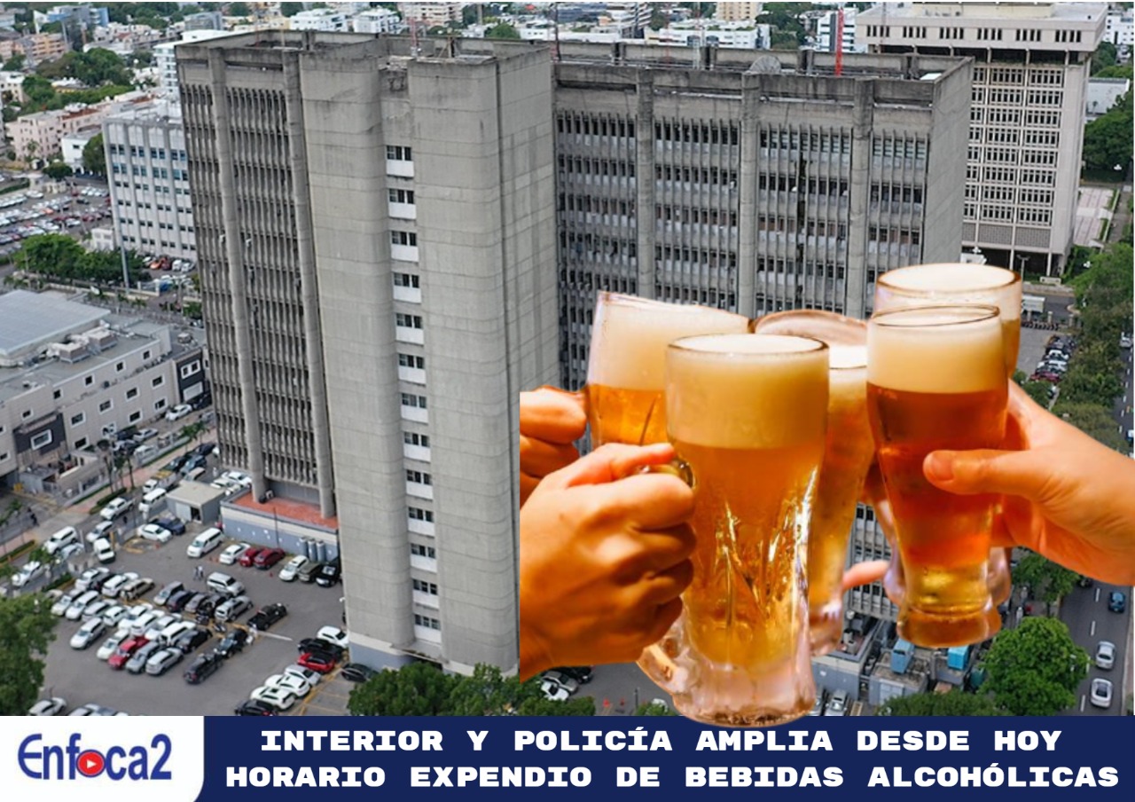 El Ministerio de Interior y Policía extendió desde hoy y hasta el 8 de enero el horario de expendio de bebidas alcohólicas en todo el territorio de domingo a jueves hasta las 3:00 a.m. y viernes y sábado hasta las 4: 00 a.m. Los días 24 y 31 no hay restricciones.