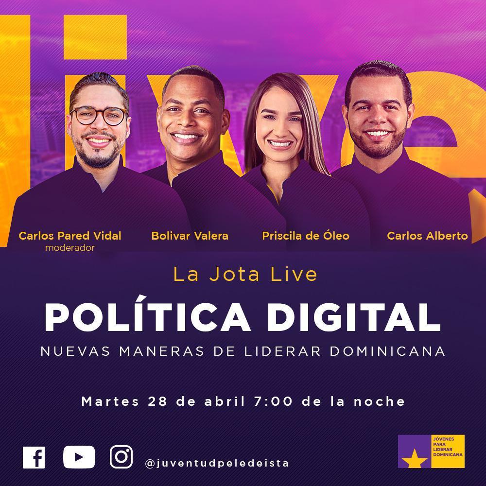 Santo Domingo, RD.- La Secretaría de la Juventud Peledeista (JPLD), bajo la coordinación de su titular Carlos Pared Vidal, innova en la forma de hacer política lanzando la JOTA live.
