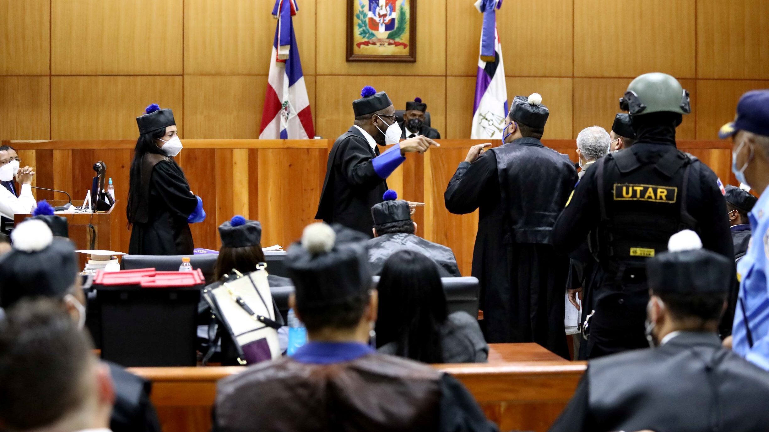 El juez leyó sin mascarilla para hacer más fácil la audición porque todos en la tiene mascarilla.