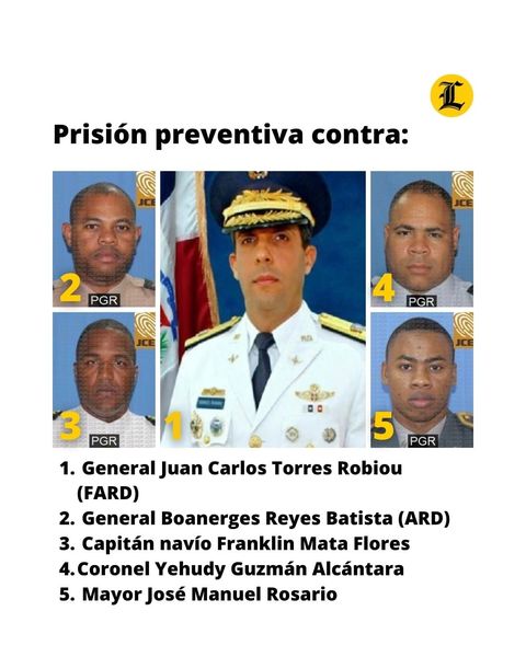 Tambien fueron enviados a prisión el capitán de navío Franklin Antonio Mata Flores, el Coronel Blandesmil Guzmán Alcántara y el mayor José Manuel Rosario Pirón.