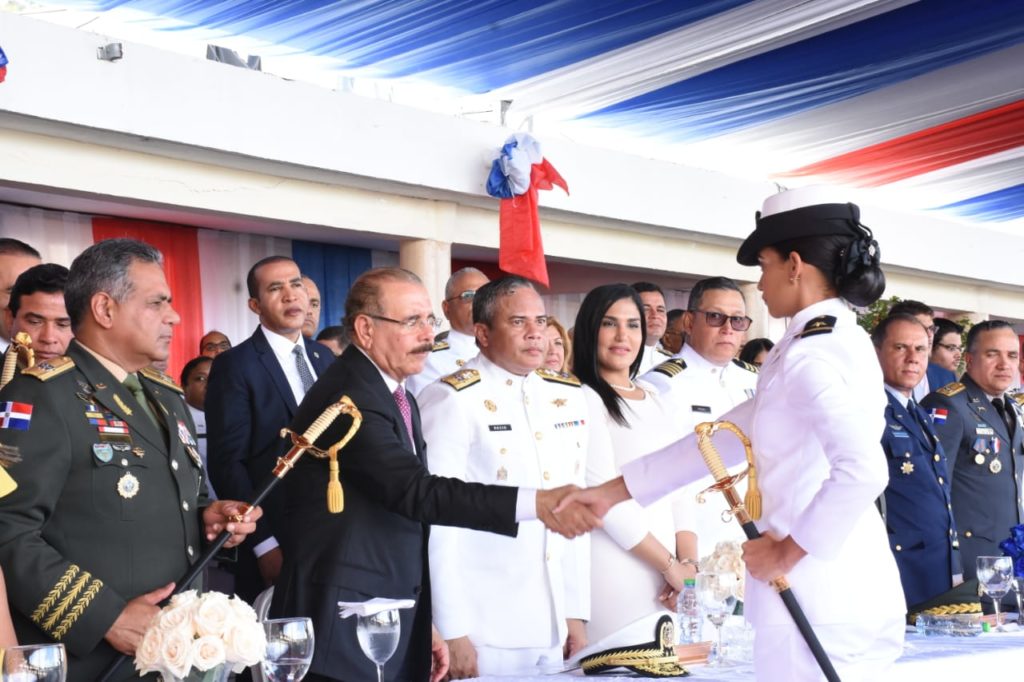 Asimismo, en la graduación de la Academia Naval, estuvo presente el excelentísimo Señor Presidente Constitucional de la República Dominicana, Licenciado Danilo Medina Sánchez,Autoridad Suprema de las Fuerzas Armadas y la Policía Nacional, quien tomó juramento de los nuevos oficiales. De igual manera, estuvieron presente el alto mando cástrense de las Fuerzas Armadas, personalidades del sector público, personalidades del servicio exterior acreditados en el país, entre otras.