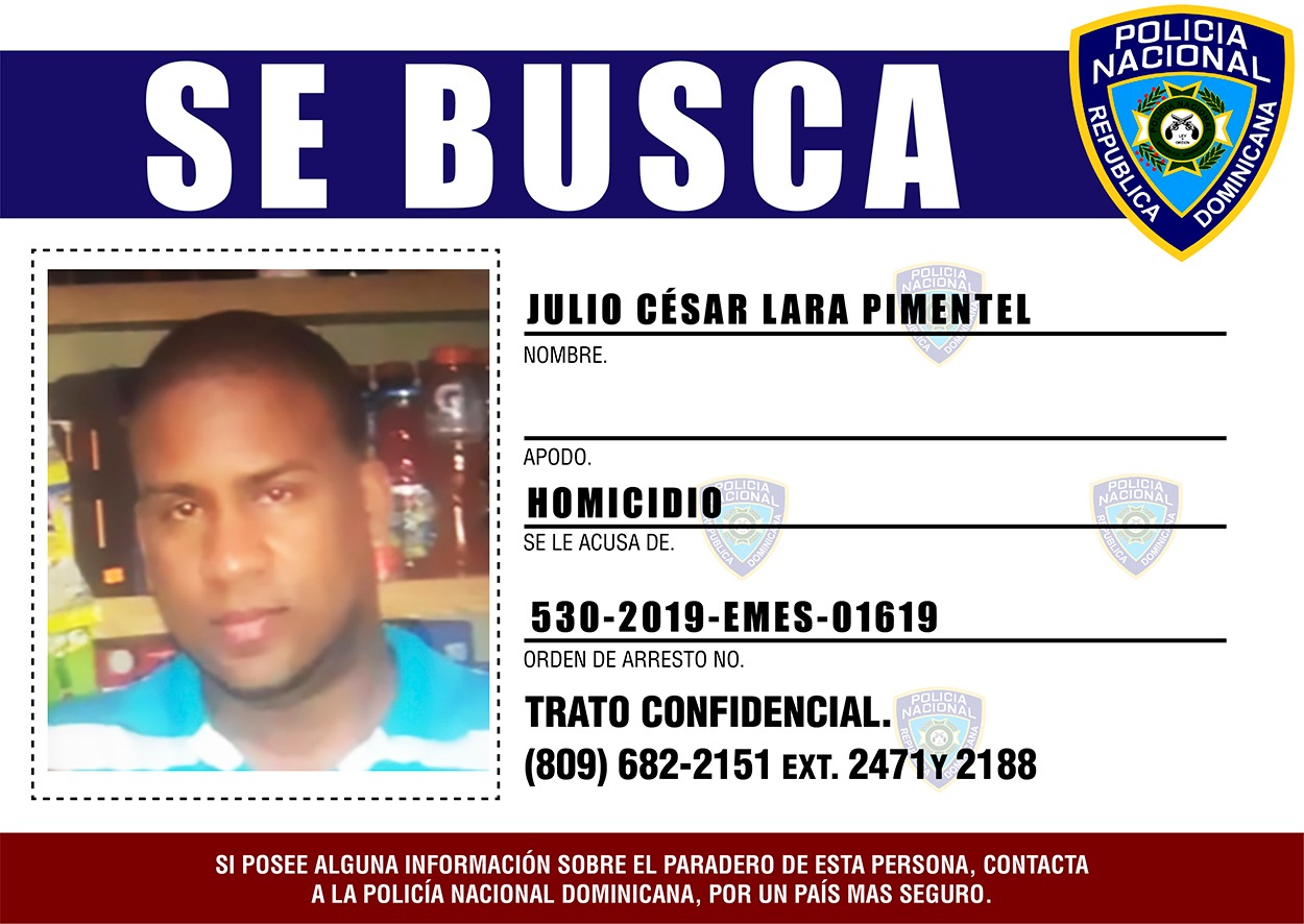 Se trata de Julio César Lara Pimentel, quien está prófugo, tras ser acusado de ultimar a Floridania Javier Paulino, quien tras sostener una relación de seis meses con el victimario, lo había dejado.