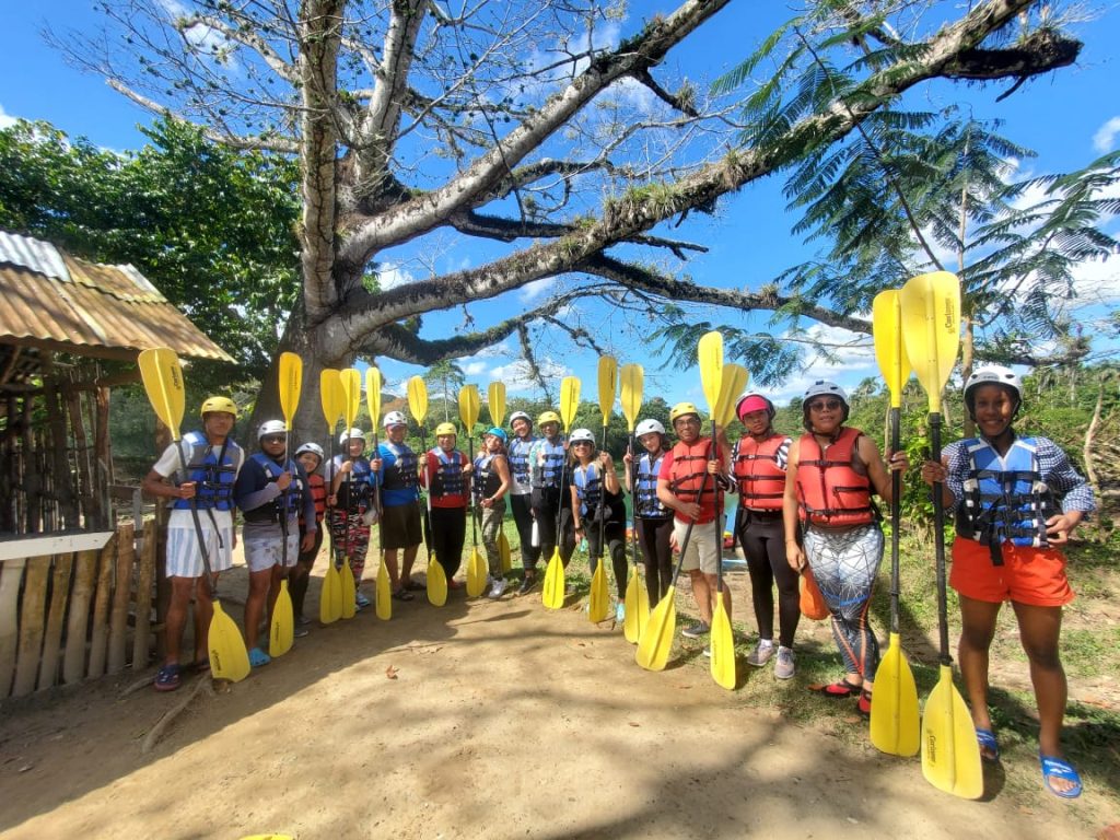 Moca, Rep. Dom. Domingo 05 de febrero 2023. Senderismo, kayak, aventura, gastronomía, historia y cultura fueron los elementos que complementaron la experiencia de un grupo de periodistas y comunicadores durante su visita a las comunidades de Moca, Jamao al Norte y Villa Trina.
