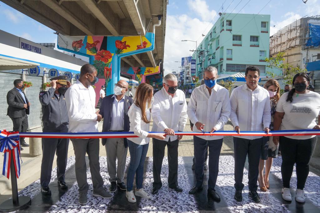 Santo Domingo.- En un acto encabezado por el presidente de la República, Luis Abinader Corona, la alcaldesa del Distrito Nacional, Carolina Mejía y el ministro de Turismo, David Collado, se entregó la primera etapa del remozamiento de la avenida Duarte con París.