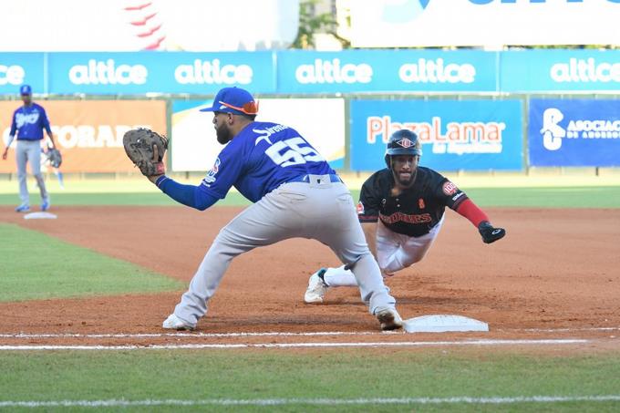 Leody Taveras negoció boleto, se robó segunda y llegó a tercera por error del cátcher en tiro, anotó con doble de Juan Lagares, Melky Cabrera conectó sencillo al bosque derecho, colocando corredores en las esquinas, Zoilo Almonte imparable al central ,anotando Lagares, Orlando Calixte impulsó la tercera con jugada de selección por la intermedia.