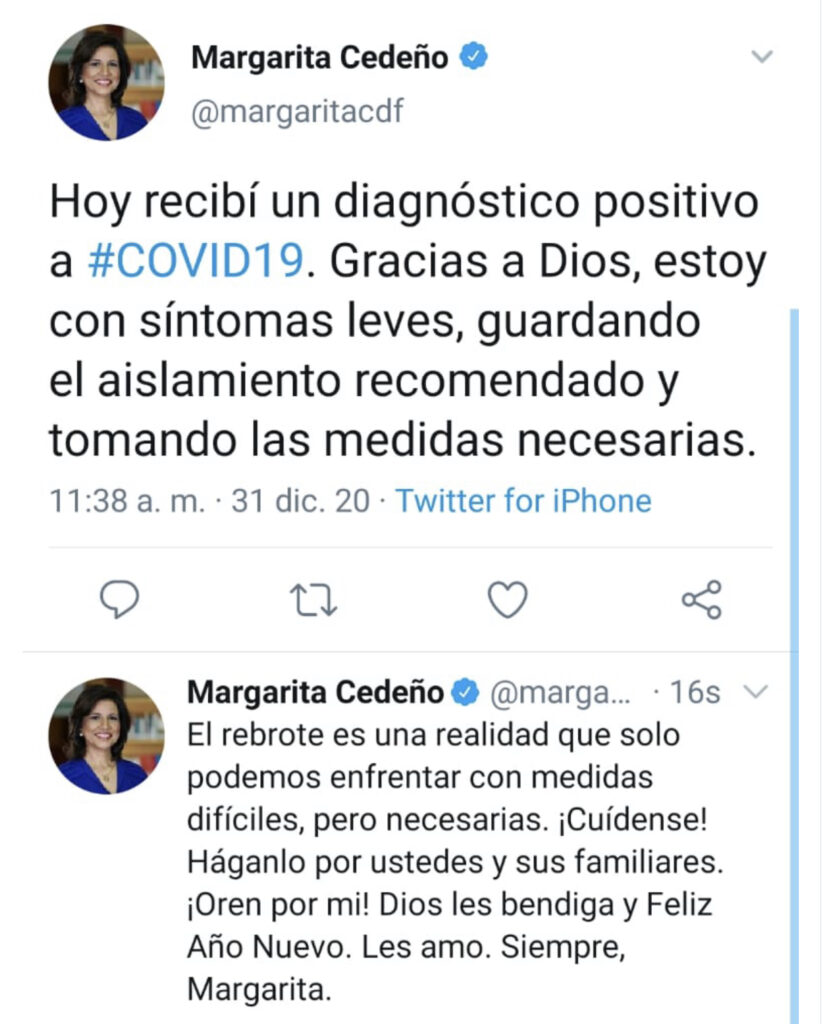 Margarita Cedeño da positivo al COVID-19: pide oren por ella