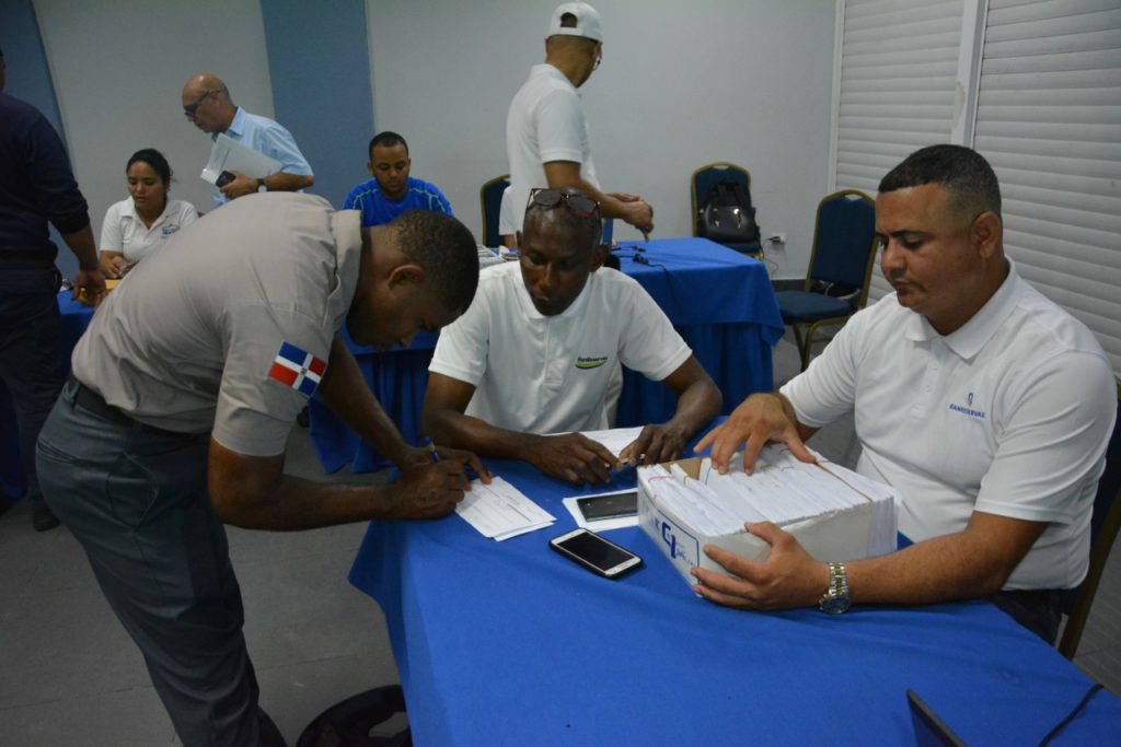 La entrega se realiza en el palacio de la institución del orden público, donde empleados del citado programa atienden con mucho entusiasmo a los policías beneficiados.