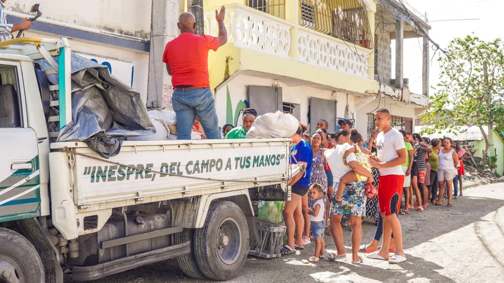 Los Alcarrizos, provincia Santo Domingo. Más de 20 mil personas residentes en Los Alcarrizos han sido beneficiadas con ventas de alimentos a bajos costos a través de las bodegas móviles del Inespre, en víspera de la inauguración del Teleférico en esa zona.