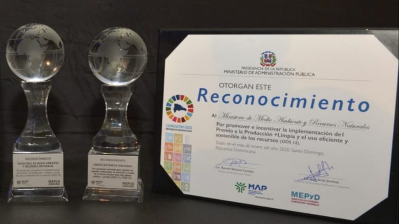 La distinción fue otorgada a la institución ambiental en reconocimiento al esfuerzo realizado “Por promover e incentivar la implementación del Premio Nacional a la producción Más Limpia (P+L) y el uso eficiente y sostenible de los recursos”, en cumplimiento a lo establecido en la Estrategia Nacional de Desarrollo (END) y los Objetivos de Desarrollo Sostenible (ODS), específicamente con el ODS 12 sobre consumo y producción responsable.