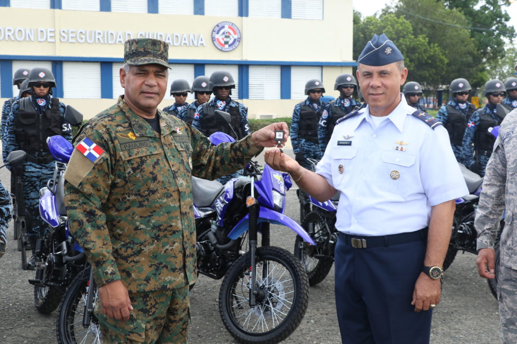 Mientras el Comandante General de la FARD, Mayor General Piloto Richard Vásquez Jiménez, al recibir las llaves de las motocicletas, agradeció en nombre de la institución y del Estado Mayor la entrega, los cuales vienen a ser parte de las labores de seguridad ciudadana que realizan conjuntamente con la Policía Nacional.