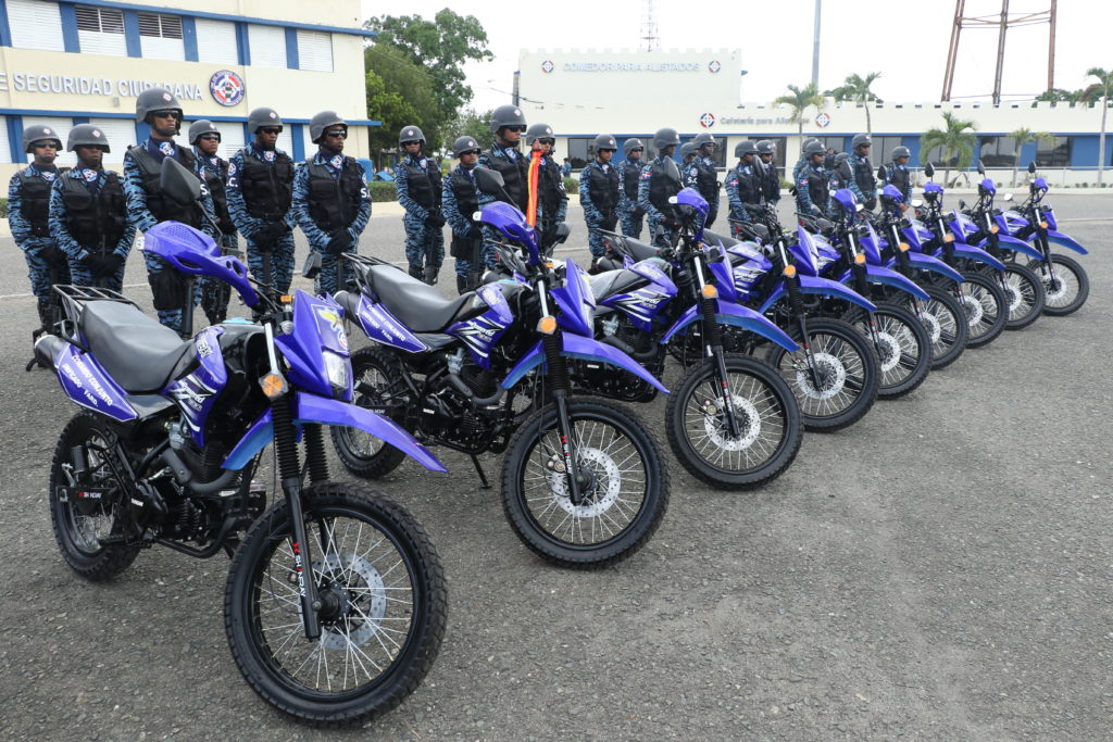 La actividad de entrega de las motocicletas se hizo en la explanada frontal del Escuadrón de Seguridad Ciudadana de la FARD con la presencia del Estado Mayor de la institución, en la Base Aérea San Isidro.
