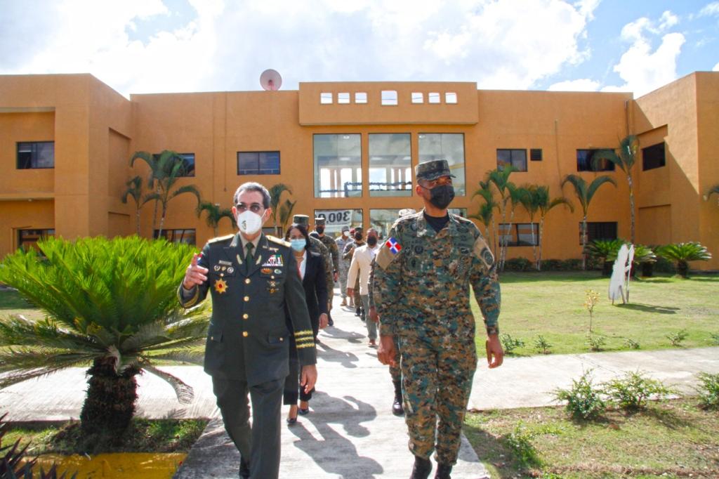 El Teniente General ERD., Carlos Luciano Díaz Morfa; recorre junto al director de la entidad formativa, General de Brigada Juan José Otaño Jiménez ERD; las distintas áreas que han sido transformadas por la actual gestión
