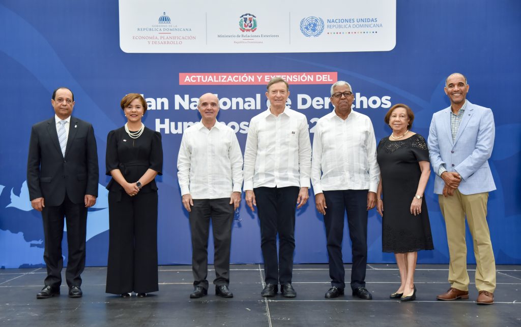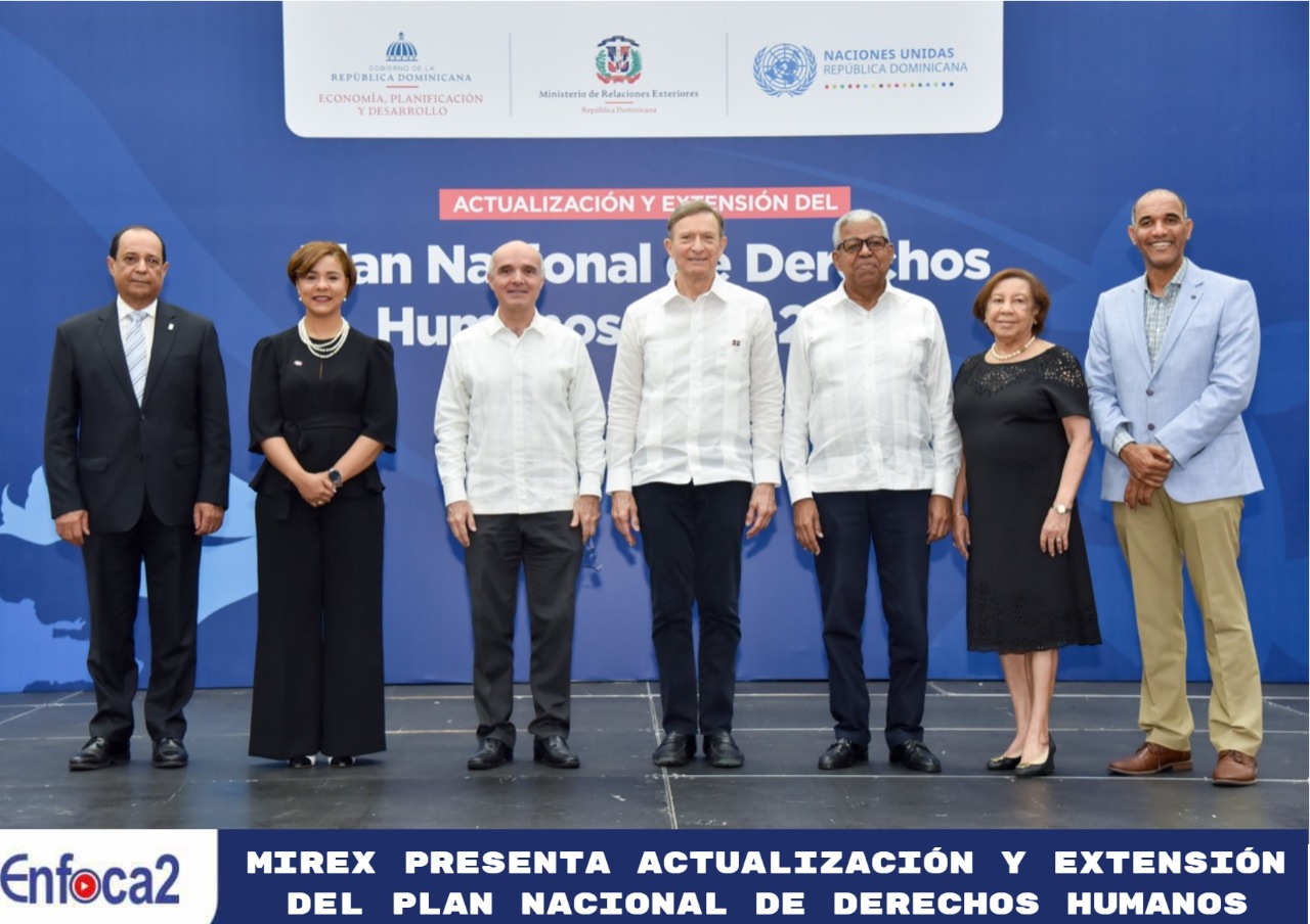 Santo Domingo de Guzmán, República Dominicana.- En el marco del Día de los Derechos Humanos que se celebra cada 10 de diciembre, el Ministerio de Relaciones Exteriores (MIREX) presentó este martes la actualización y extensión del Plan Nacional de Derechos Humanos (PNDH), con el que se reafirma la voluntad política del Gobierno dominicano de impulsar los mecanismos de promoción y defensa de los derechos fundamentales de todas las personas en el territorio nacional. El PNDH 2018-2024 fue producto de un amplio proceso de consulta que se realizó con instituciones estatales, organizaciones de la sociedad civil y diversos sectores afines, con el objetivo de fortalecer las políticas de combate contra la pobreza, inclusión social, participación y respeto a la dignidad humana. “Este compromiso tiene dos vertientes, por un lado, hacer de los derechos humanos un eje transversal de toda la administración pública, institucionalizando todos los procesos pertinentes que fomenten su defensa y protección; y por el otro, motivar la participación de la sociedad civil para reforzar nuestra democracia y hacer de ella no sólo un enunciado constitucional, sino un modo de actuar tanto del Estado como de nuestra población”, explicó el canciller Roberto Álvarez durante la presentación de este instrumento. El diplomático destacó además, el rol activo que está desempeñando la Cancillería en cuanto a orientar a las instituciones del Estado en materia de Derechos Humanos. “Pasamos de ser un ente de consulta a uno que coordina la Comisión de Derechos Humanos, que es la que encabeza el Plan Nacional de Derechos Humanos como agenda estatal, que lleva el conteniendo, los programas y acciones más importantes para garantizar los derechos humanos en nuestro país”, señaló. De su lado, el viceministro de Política Exterior Multilateral, Rubén Silié, explicó que la actualización y extensión de los compromisos en este aspecto fueron adoptadas debido a que la ejecución del plan 2018-2022 se vio afectada por la pandemia de la COVID-19. “Esto permitirá incluir acciones que hoy día son necesarias para mejorar la dignidad y el desarrollo de todas las personas. En aras de no dejar a nadie atrás y, cumplir con los objetivos de desarrollo sostenible de la agenda 2030, así como con el eje número tres de nuestra política exterior que contempla promover los valores democráticos y de derechos humanos consagrados en nuestra Constitución y los tratados internacionales”, apuntó el viceministro Silié. En el acto, celebrado en el Centro de Convenciones del MIREX, participó el coordinador residente de las Naciones Unidas, Mauricio Ramírez Villegas; y el director de Gabinete del Ministerio de Economía, Planificación y Desarrollo, Manuel Robles. En la actividad se informó que el documento de actualizado del PNDH 2018-2024 estará disponible en febrero 2023.