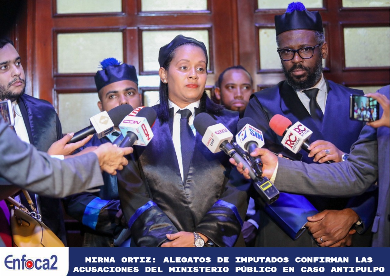 SANTO DOMINGO (República Dominicana).- La procuradora de corte Mirna Ortiz afirmó que los alegatos presentados por los imputados del Caso Antipulpo en el Séptimo Juzgado de la Instrucción del Distrito Nacional, confirman las imputaciones y acusaciones hechas por el Ministerio Público.