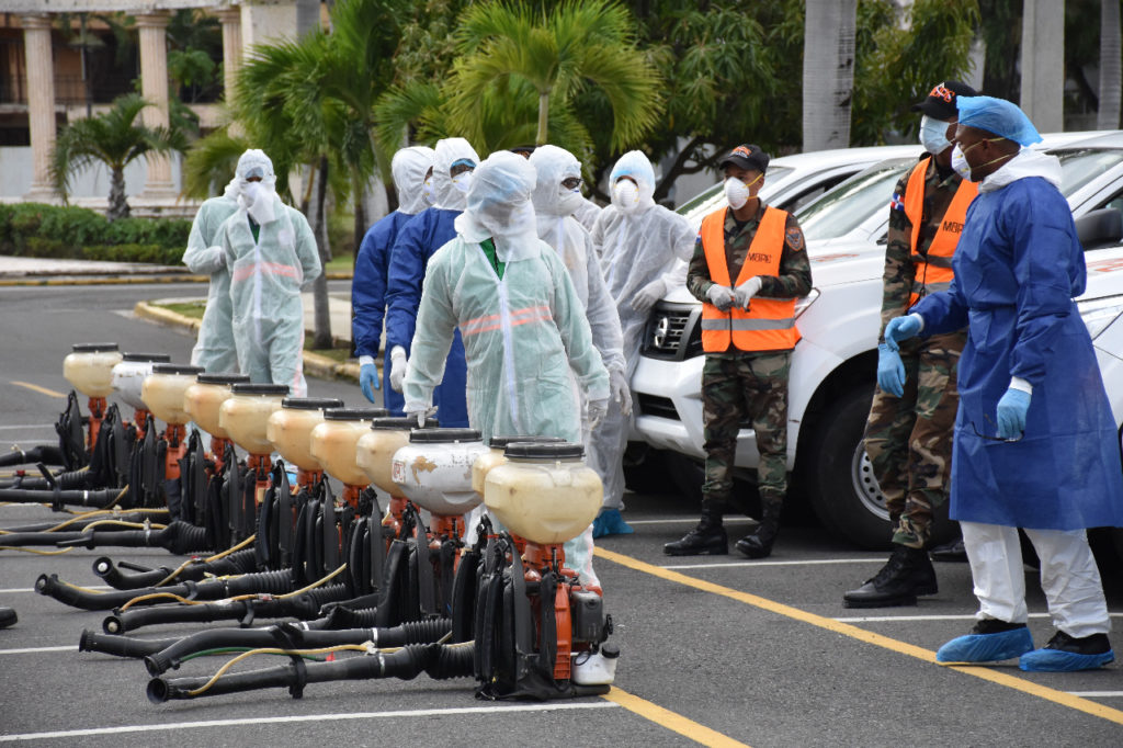 están dando ayuda a la población con el trabajo de desinfección en las