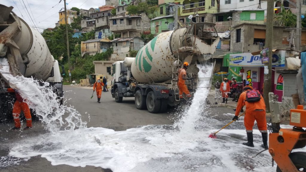 Los operativos que se iniciaron el pasado 19 de marzo con los camiones turbinas y posteriormente se integraron las compañías constructoras y hormigoneras con camiones trompos y barredores, que junto a las brigadas del MOPC integradas por más de 500 hombres, diariamente trabajan en higienizar los diferentes puntos de los sectores y lugares de posibles focos o de alta vulnerabilidad de contagio del virus, divididos y distribuidos en cuatro equipos de trabajo.