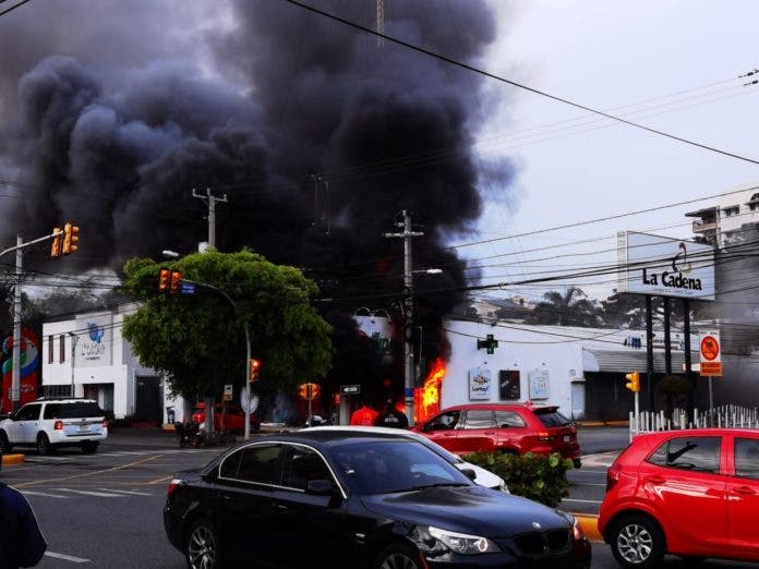 El incendio de la farmacia Los Hidalgos de la avenida Abraham Lincoln comenzó a las 5:53 de la tarde, y de inmediato la humareda se expandió.