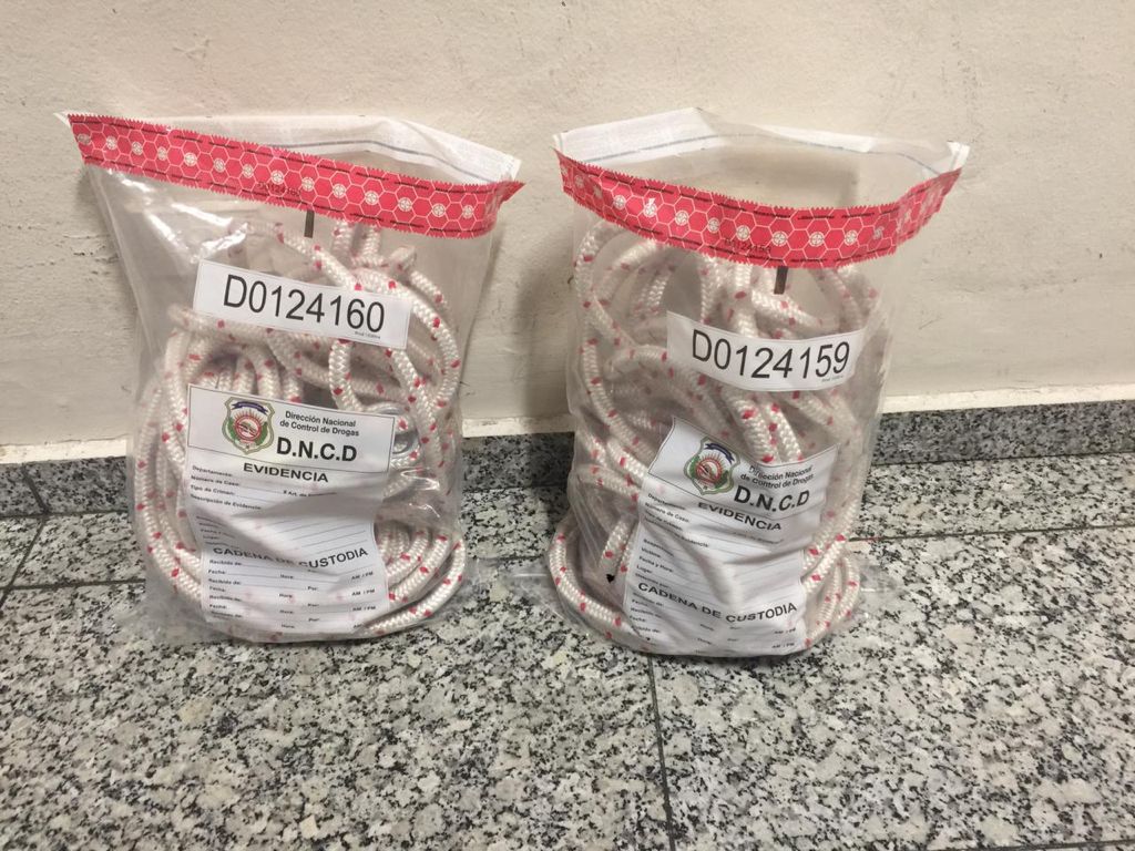 Santo Domingo.- La Dirección Nacional de Control de Drogas (DNCD) con apoyo del Cuerpo Especializado de Seguridad Aeroportuaria y bajo la coordinación del Ministerio Público, ocuparon dos sogas trenzadas, que cubrían un tubo relleno de presumiblemente cocaína líquida.