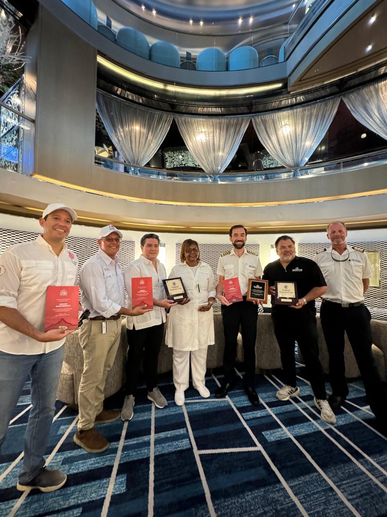 El Nieuw Amsterdan fue recibido también por Altagracia Brea, gobernadora de Pedernales, colaboradores y funcionarios de distintas entidades públicas que participan de la ejecución del proyecto de desarrollo turístico en Cabo Rojo.