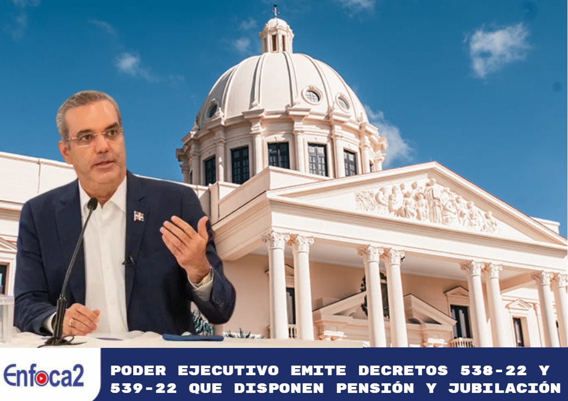 Santo Domingo.- El Poder Ejecutivo emitió los decretos número 538-22 y 539-22 mediante los cuales dispone los beneficios de pensión del Estado dominicano y jubilación a servidores públicos, ex trabajadores cañeros y afiliados del antiguo Instituto Dominicano de Seguros Sociales (IDSS).