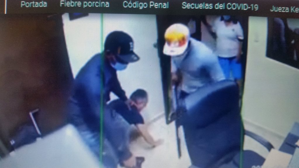 En el vídeo que se hizo viral ayer en las redes sociales, se ve a tres hombres armados con una pistola y una escopeta entrar a la oficina del propietario de la farmacia, golpearlo en la cabeza y rebuscar en la misma, desde donde cargaron con una cantidad indeterminada de dinero, dos llaves de vehículos, cinco cheques y una escopeta, según dijo la vocera de la Policía Nacional, teniente coronel Josefina Jiménez Cruceta.De lo robado, la Policía ha recuperado hasta el momento RD$ 192,000 y US$2,911 en efectivo, una escopeta y un carro. Fueron ocupadas también dos pistolas, además de una motocicleta dejada abandonada el día del asalto.