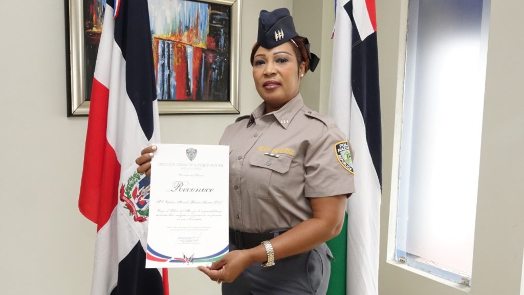Y es que la capitán Fortuna, al igual que sus demás compañeros, recibió este miércoles de manos del titular del cuerpo del orden, mayor general Bautista Almonte, su certificado que la convierte en “Policía del Mes”, iniciativa que busca motivar y agradecer el sacrificio que durante 365 días hacen nuestros integrantes de la ley y el orden para contribuir a la convivencia pacífica desde las distintas direcciones regionales.