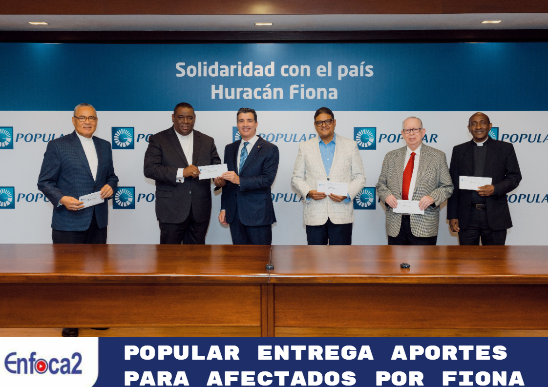 Santo Domingo. – El Banco Popular Dominicano efectuó la entrega anunciada del aporte de RD$50 millones para la asistencia de las personas y comunidades más afectadas por el paso del huracán Fiona, que será distribuido por el Centro de Operaciones de Emergencias (COE), distintas diócesis de la iglesia católica y congregaciones evangélicas y cristianas.