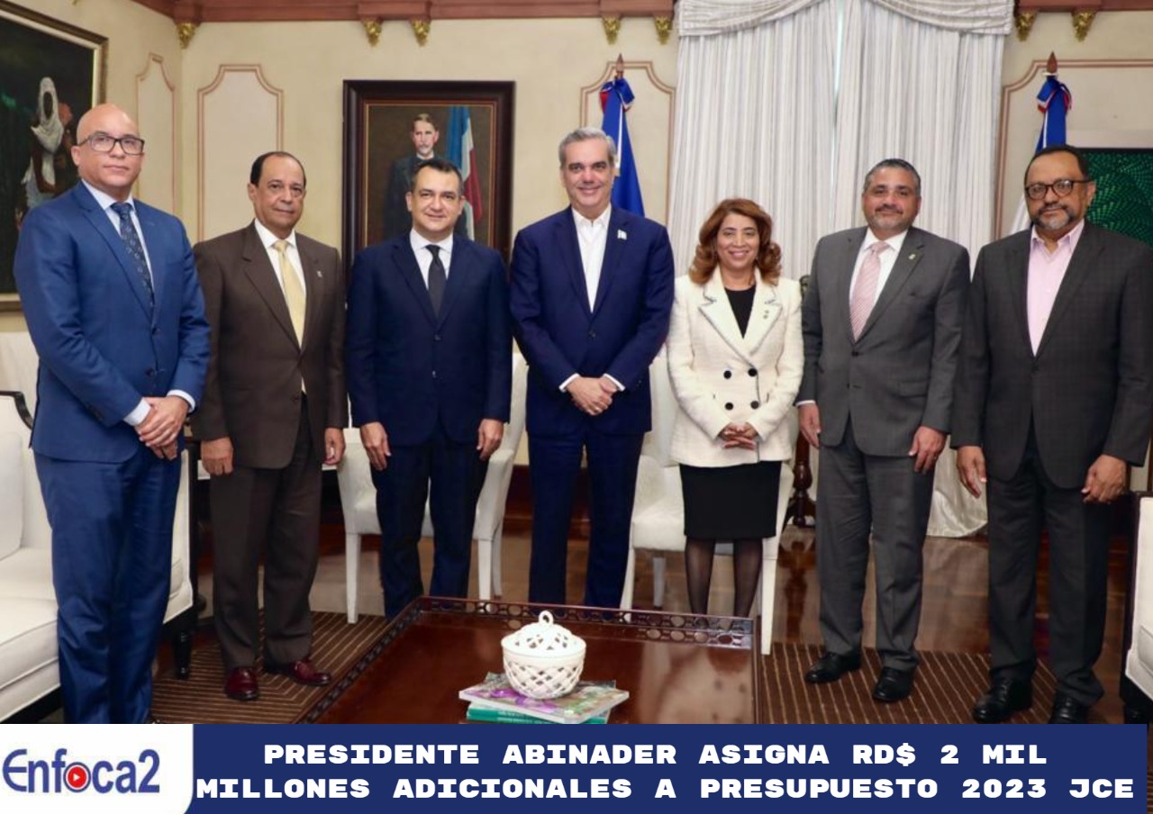 Santo Domingo. – Al término de una reunión entre el presidente Luis Abinader y los miembros del pleno de la Junta Central Electoral, el vocero de la Presidencia, Homero Figueroa, informó que el mandatario asignará un total de 2 mil millones de pesos adicionales al presupuesto de dicha institución para este 2023.