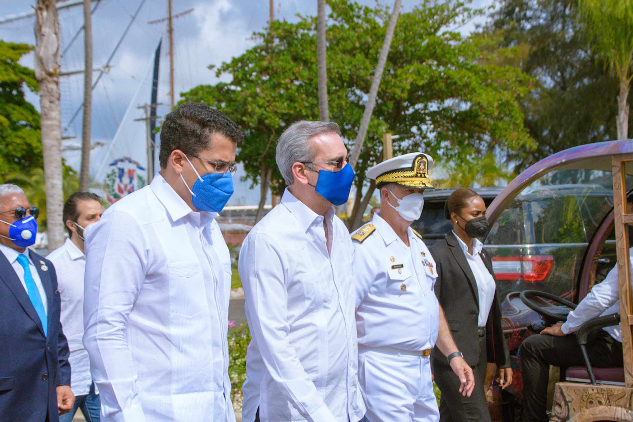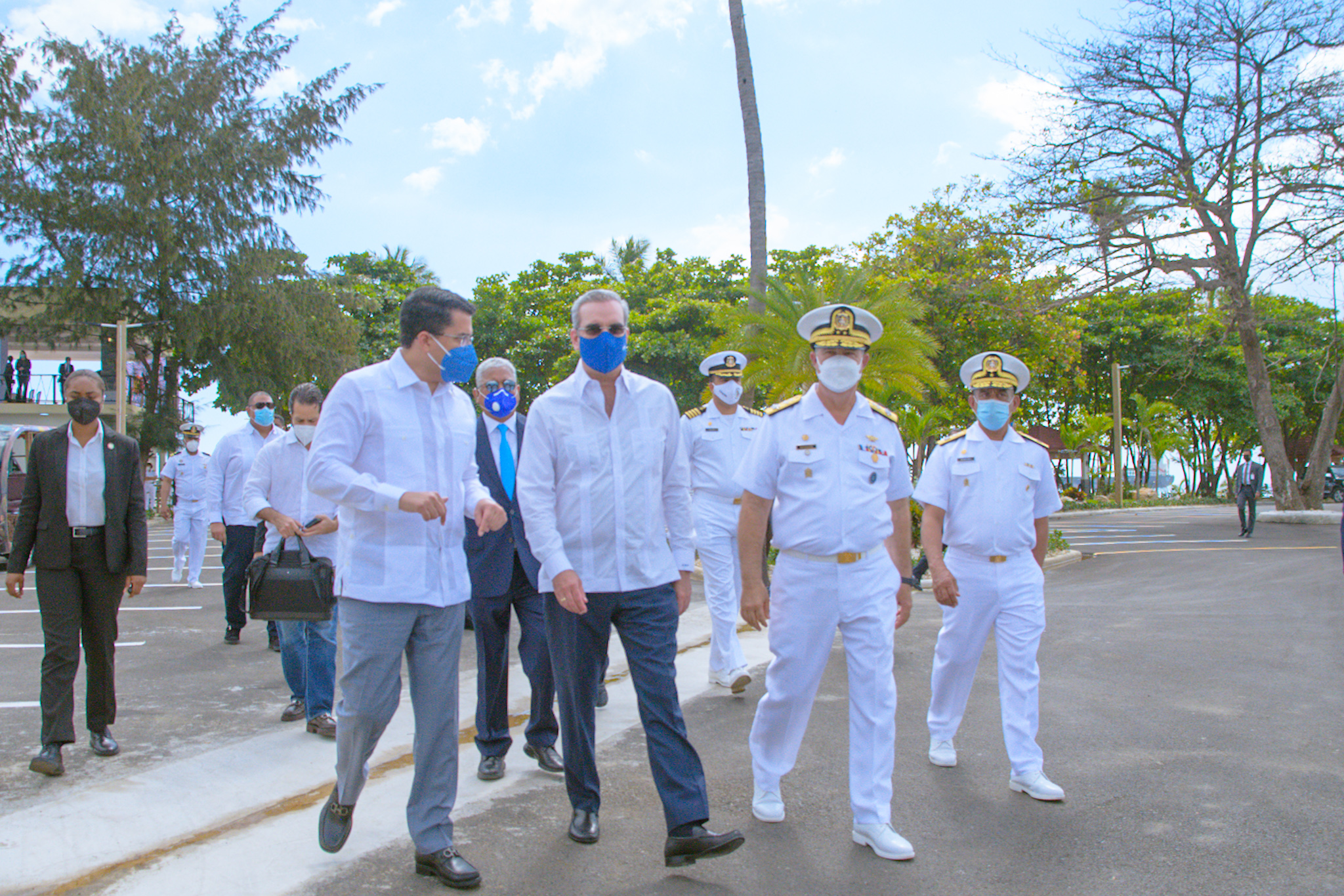 SANTO DOMINGO.- El presidente de la República, Luis Abinader, junto al ministro de Turismo, David Collado, entregó este jueves al comandante general de la Armada de República Dominicana, vicealmirante Ramón Gustavo Betances Hernández, el inaugurado edificio que aloja al club de oficiales de la institución militar naval.