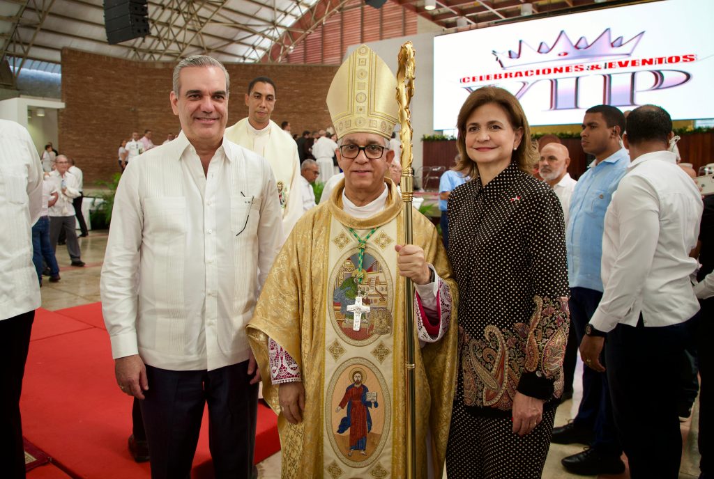 *Asiste a toma de posesión monseñor Héctor Rafael Rodríguez*Más temprano, el presidente Abinader, acompañado de la vicepresidenta Raquel Peña, participó en la solemne ceremonia de toma de posesión del nuevo arzobispo metropolitano de la Arquidiocesis de Santiago de los Caballeros, monseñor Héctor Rafael Rodríguez, quien sustituye a monseñor Freddy de Jesús Bretón.