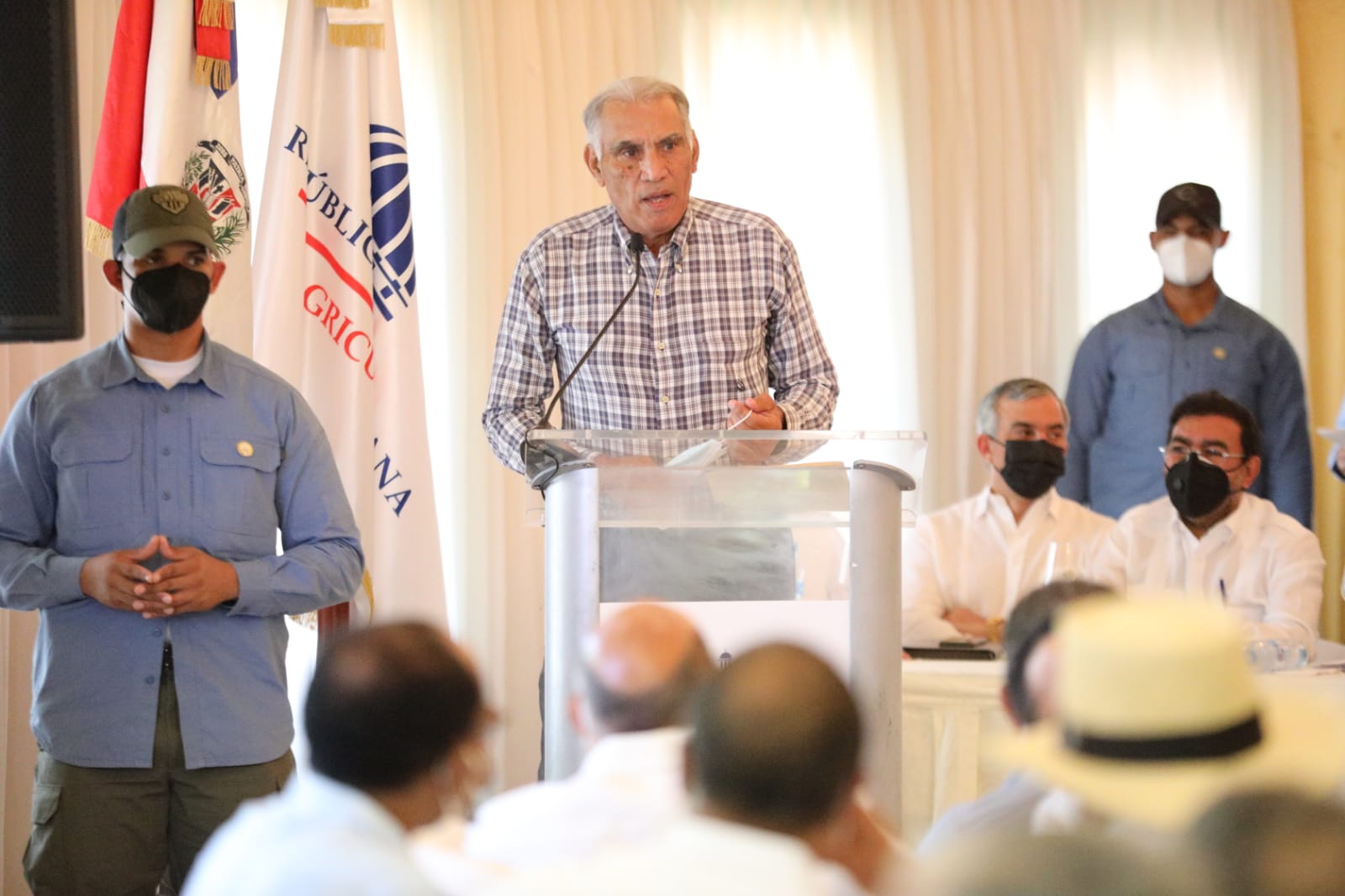 Acompañaron al mandatario en la actividad el expresidente Hipólito Mejía, los ministros Administrativo de la Presidencia, José Ignacio Paliza; de Agricultura, Limber Cruz; la ministra de Estado sin Cartera, Geanilda Vásquez; el expresidente del Senado, Andrés Bautista; el administrador del Banco Agrícola, Fernando Durán; el director del Instituto de Estabilización de Precios (INESPRE), Iván Hernández; el director del Instituto Nacional de Recursos Hidráulicos (INDRHI) y el director de INAPA, Wellington Arnaud.