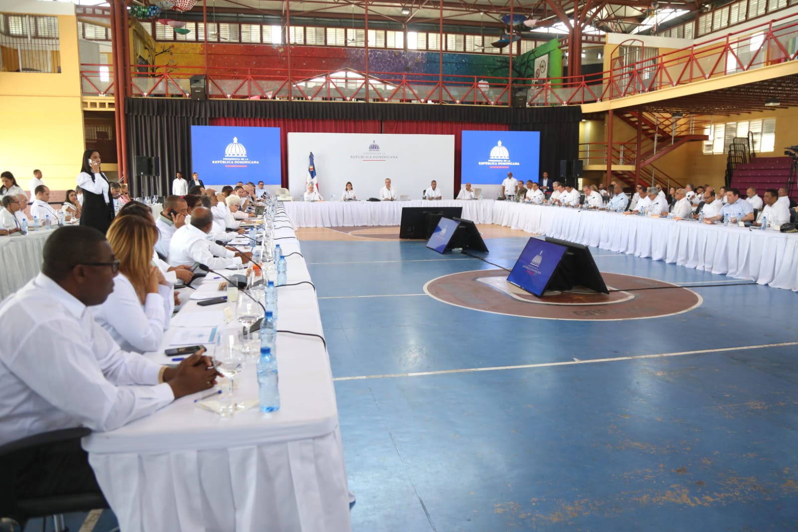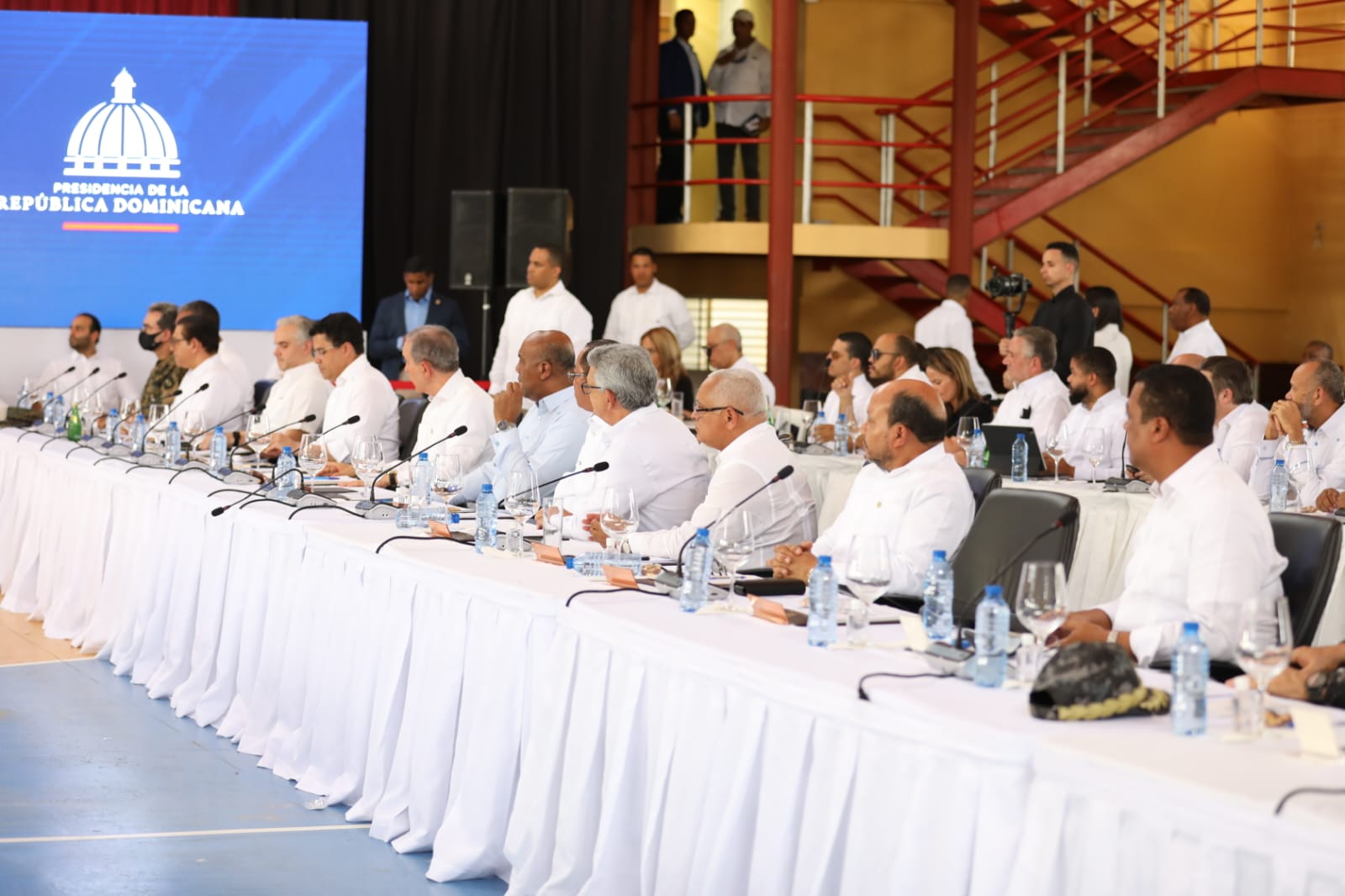 En la reunión que se lleva a cabo en el Salón Multiuso del Colegio Inmaculado Corazón de María, participan, además, la vicepresidenta, Raquel Peña y los presidentes del Senado, Eduardo Estrella y de la Cámara de Diputados, Alfredo Pacheco; el ministro interino de la Presidencia, Joel Santos; el ministro Administrativo de la Presidencia, José Ignacio Paliza y los principales funcionarios del Gobierno.