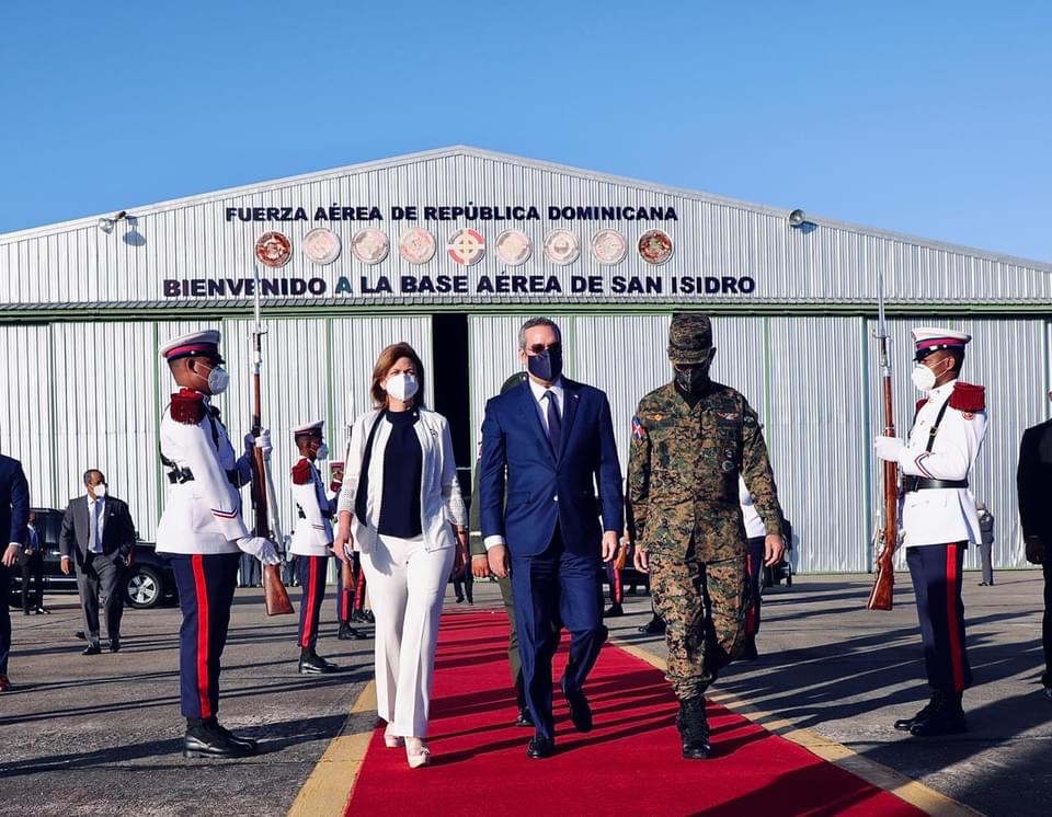 Acompañan al mandatario el canciller, Roberto Álvarez; el ministro administrativo de la Presidencia, José Ignacio Paliza; sus asistentes Eylin Beltrán y Mercedes Pichardo, así como el jefe del Cuerpo de Ayudantes, general Celin Rubio.