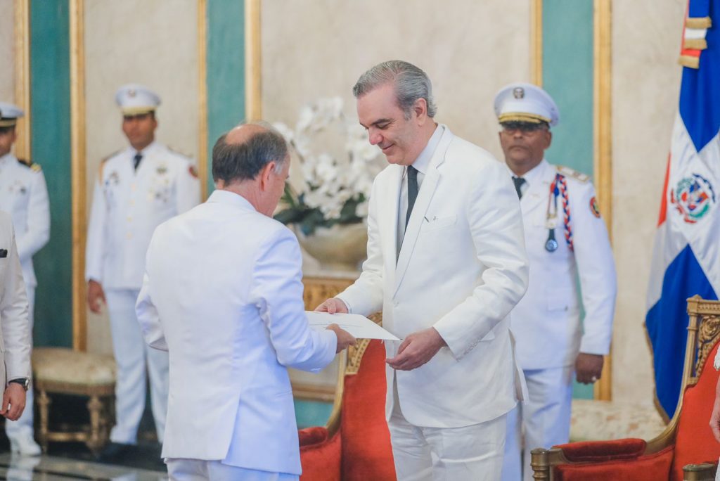 Santo Domingo. – El Presidente Luis Abinader recibió este jueves las cartas credenciales de ocho nuevos embajadores acreditados en el país, en representación de las Repúblicas de Guatemala, Perú, Indonesia, Serbia, Portugal, la República Checa y los Reinos de Bélgica y Arabia Saudita.