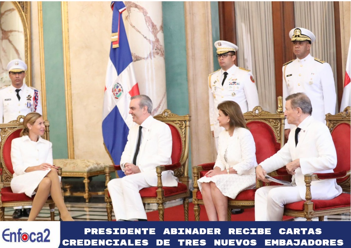 Santo Domingo. – El presidente Luis Abinader recibió este martes la entrega de las cartas credenciales de los nuevos embajadores de México, Alemania y del Reino de Los Países Bajos en ceremonia solemne realizada en el Palacio Nacional.