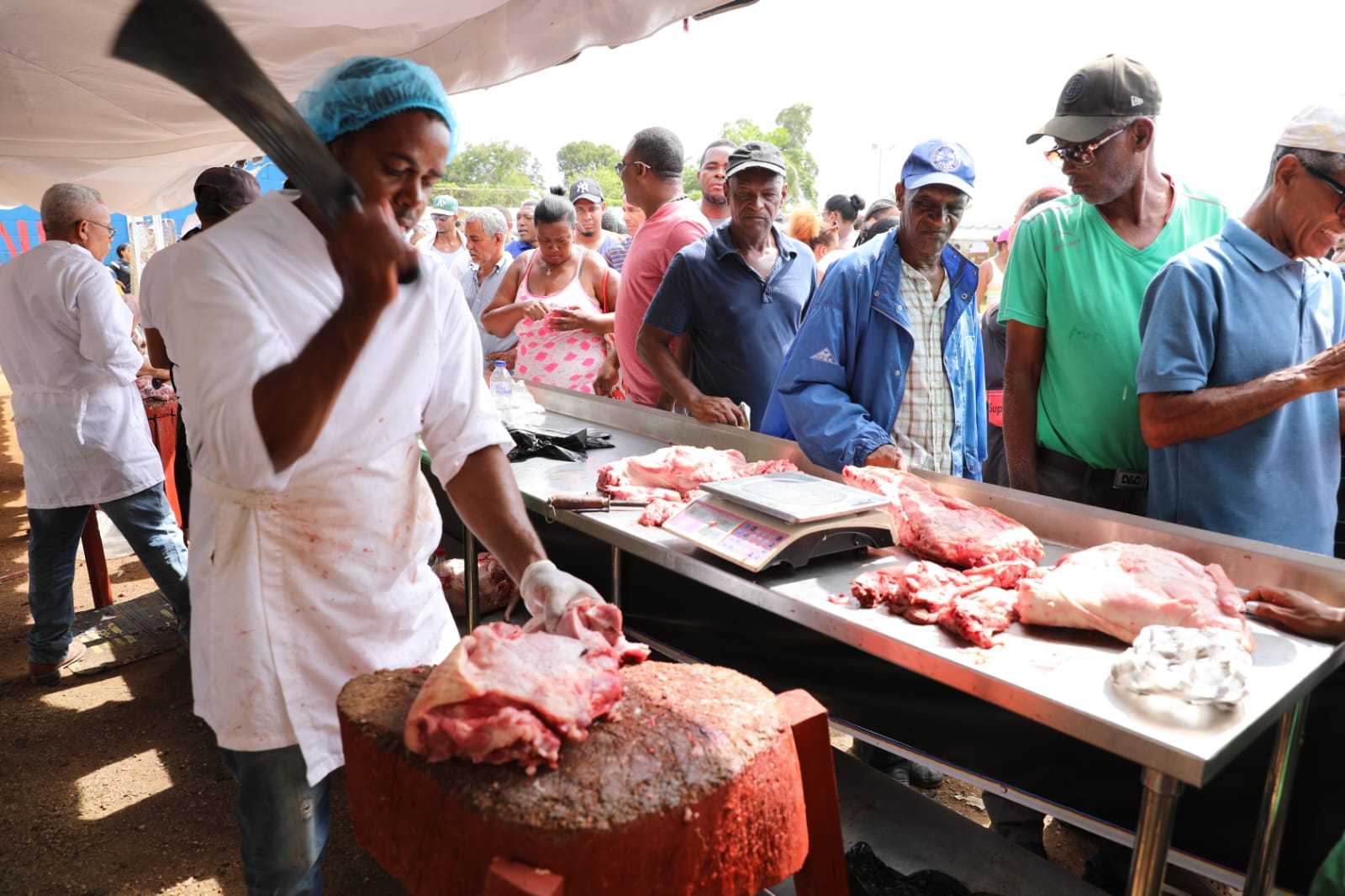 Las personas acudieron a la feria y adquirían los plátanos y guineos a peso, pollo congelado a 150 pesos, la libra de arroz selecto a 20 pesos, de papas criollas a 8 pesos, de cebolla roja a 25, de ajo a 100 pesos, el cartón de huevos de 30 unidades a 100 pesos, gallina a 125, gallina gigante a 300, así como otros productos con ofertas especiales.