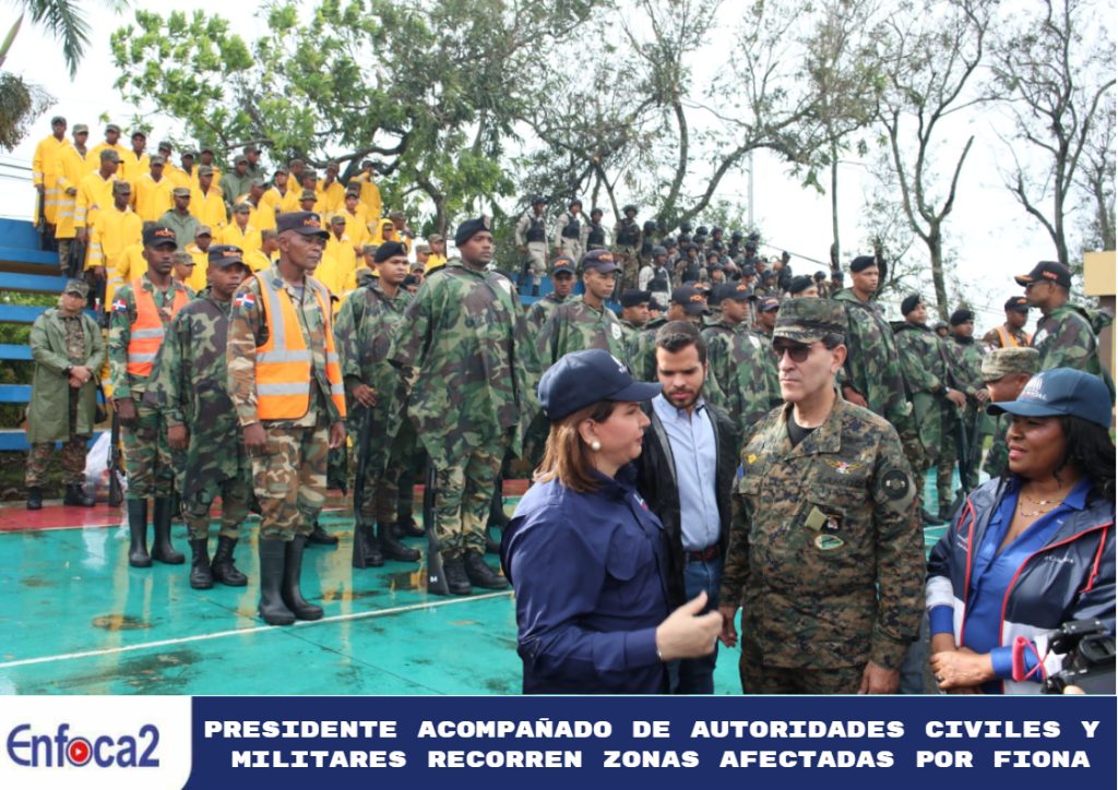 HIGÜEY, PROVINCIA LA ALTAGRACIA.- El Presidente de la República Luis Rodolfo Abinader Corona al recorrer acompañado del Ministro de Defensa y otras autoridades civiles de las zonas afectadas por el Huracán Fiona, exhortó a las Fuerzas Armadas a aunar sus mayores esfuerzos, para asistir a las comunidades vulnerables ante la situación de emergencia y garantizar la seguridad ciudadana en la zona este del país.
