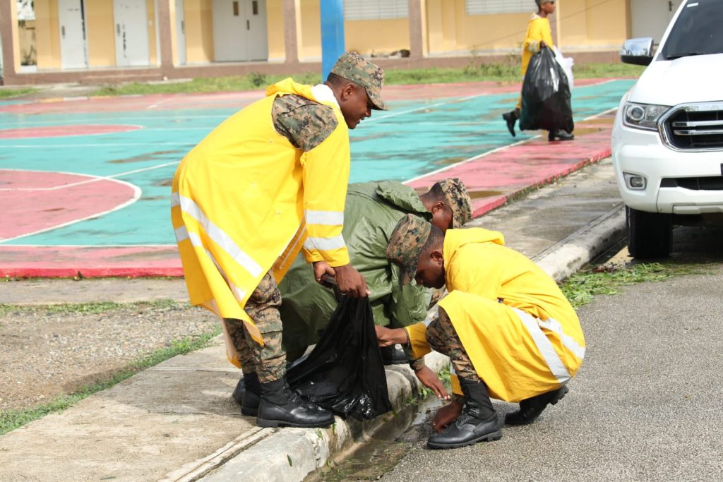 Desde tempranas horas de la mañana de este martes, el Ministro de Defensa Teniente General Carlos Luciano Díaz Morfa, ERD., quien se encuentra en Higüey desde este lunes, sobrevoló y recorrió por tierra zonas que han sido afectadas tales como Cambelén, Los Platanitos, El Tamarindo, Nazaret, Villa Palmera y la Otra Banda, para reconocer los daños a fin de reforzar la presencia militar en la zona este y nordeste, donde han sido enviados aproximadamente, unos 800 soldados extra al personal fijo.Mientras que los soldados de los cuerpos especializados de seguridad del MIDE, tales como la Fuerza de Tarea Conjunta Ciudad Tranquila (CIUTRAN) y la Comisión Militar y Policial (COMIPOL) de Obras Públicas, continúan trabajando en los patrullajes y evacuaciones preventivas; también en coordinación con las autoridades civiles, ayudan a despejar los caminos afectados por árboles caídos y los fuertes vientos.