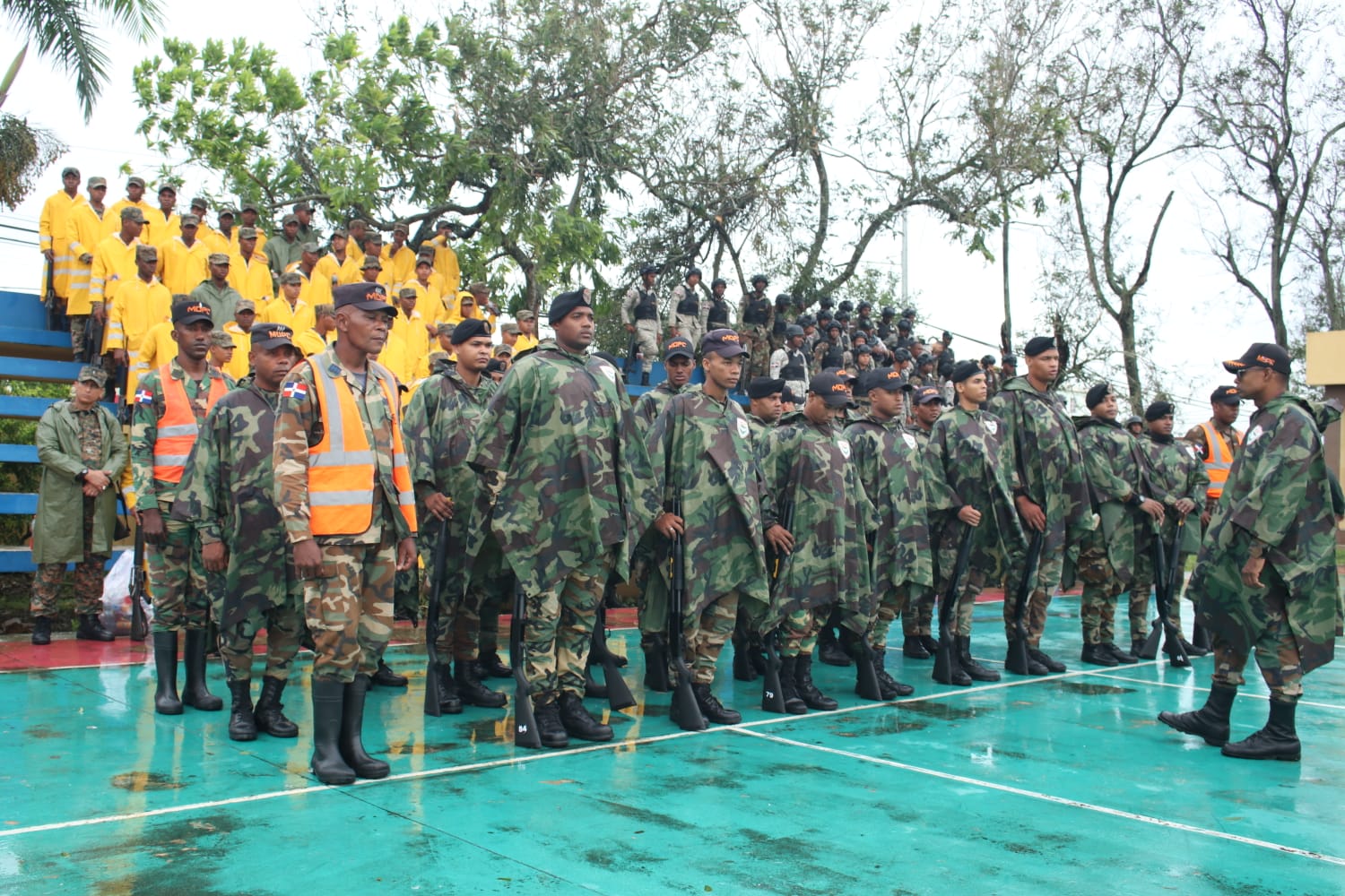 Desde tempranas horas de la mañana de este martes, el Ministro de Defensa Teniente General Carlos Luciano Díaz Morfa, ERD., quien se encuentra en Higüey desde este lunes, sobrevoló y recorrió por tierra zonas que han sido afectadas tales como Cambelén, Los Platanitos, El Tamarindo, Nazaret, Villa Palmera y la Otra Banda, para reconocer los daños a fin de reforzar la presencia militar en la zona este y nordeste, donde han sido enviados aproximadamente, unos 800 soldados extra al personal fijo.Mientras que los soldados de los cuerpos especializados de seguridad del MIDE, tales como la Fuerza de Tarea Conjunta Ciudad Tranquila (CIUTRAN) y la Comisión Militar y Policial (COMIPOL) de Obras Públicas, continúan trabajando en los patrullajes y evacuaciones preventivas; también en coordinación con las autoridades civiles, ayudan a despejar los caminos afectados por árboles caídos y los fuertes vientos.