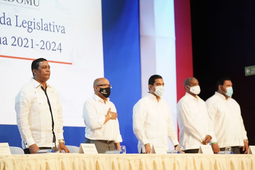 En el inicio del taller “Construyendo la Agenda Legislativa Municipal Dominicana 2021-2024”, realizado en un hotel de Punta Cana, y organizado por Fedomu y la Liga Municipal Dominicana (LMD), también participaron en la mesa principal el secretario general de la LMD, Víctor D´ Aza; el presidente de la Cámara de Diputados, Alfredo Pacheco.